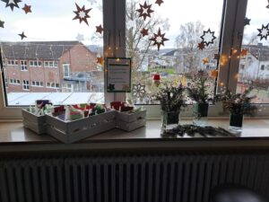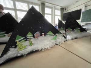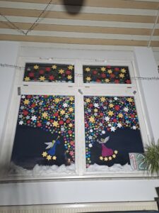 Zum Ende des Schulfestes wurde noch ein Adventsfenter enthüllt, für das viele Schülerinnen und Schüler unzählige Sterne ausgeschnitten hatten.
