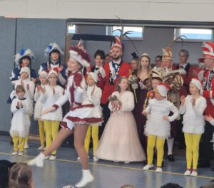 Als besondere Gäste durften wir eine Abordnung der Brakeler Karnevalsgesellschaft samt Prinzenpaar begrüßen. Besonders gefreut haben sich die Kinder über das Kinderprinzenpaar Henry und Pauline. Gemeinsam mit den Prinzenpaaren wurden Spiele gespielt. Auch die Wilden Hühner und das Solomariechen haben einen Tanz präsentiert. Zur großen Freude aller haben die Prinzenpaare Quarkbällchen mitgebracht.